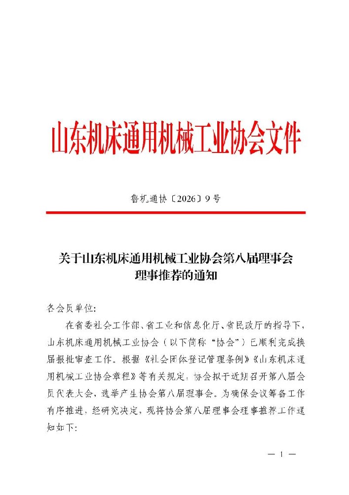 鲁机通协〔2026〕9号 关于山东机床通用机械工业协会第八届理事会理事推荐的通知.pdf