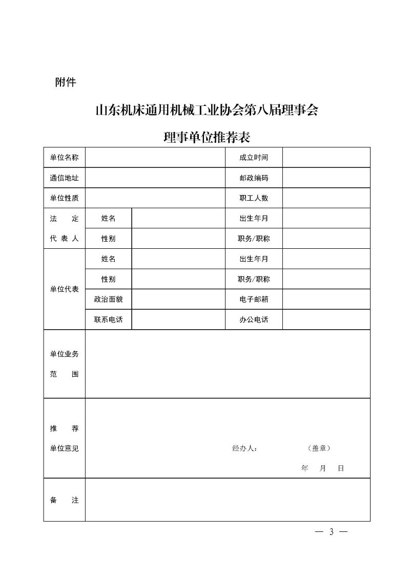 鲁机通协〔2026〕9号 关于山东机床通用机械工业协会第八届理事会理事推荐的通知附件.docx