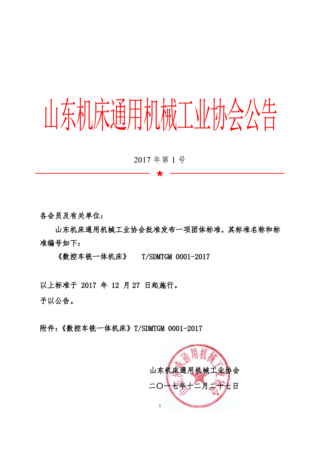《数控车铣一体机床》 T/SDMTGM 0001-2007
