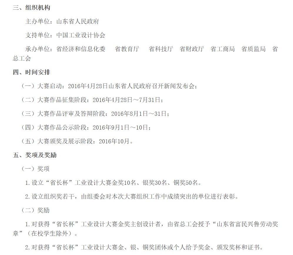 山东省首届“省长杯”工业设计大赛申报材料下载