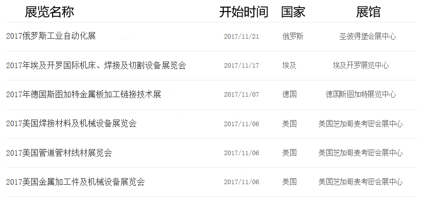 2017年11月境外工业机械展览会汇编